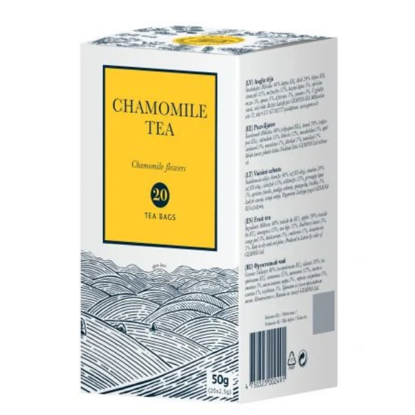 Ramunėlių arbata GEMOSS COLLECTION 1 g x 20 – natūrali ir aromatinga žolelių arbata, skirta ramiam poilsiui ir kasdieniam mėgavimuisi. Pagaminta iš 100 % ramunėlių žiedų, ši arbata pasižymi švelniu skoniu ir maloniu aromatu. Tinka tiek HoReCa sektoriui, tiek namams, užtikrinant kokybišką gėrimų pasirinkimą klientams ar šeimai. Patogus pakelių formatas leidžia lengvai paruošti vieną porciją, o sandari pakuotė padeda išlaikyti arbatos šviežumą. Laikyti rekomenduojama sausoje ir vėsioje vietoje.