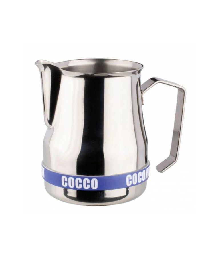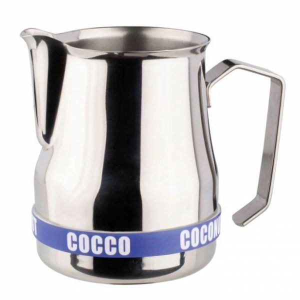 Motta metalinis ąsotis COCONUT 0.5 l – profesionalus baristos įrankis su balta silikonine juostele, žyminčia kokosų pieną. Sukurtas patogiam ir tiksliam kavos ruošimui, šis ąsotis padeda lengvai atskirti skirtingus pieno tipus. Ergonomiška rankena ir formuotas snapelis leidžia preciziškai pilti bei plakti pieną. Puikiai tinka naudoti kavinėse, restoranuose ar namuose.