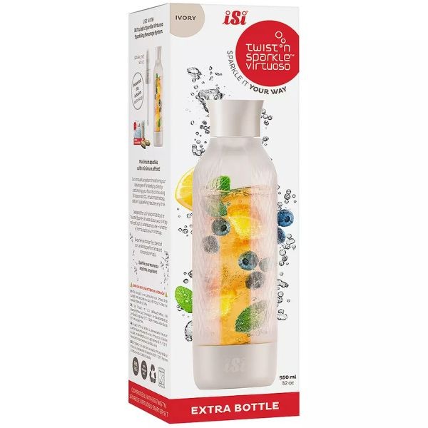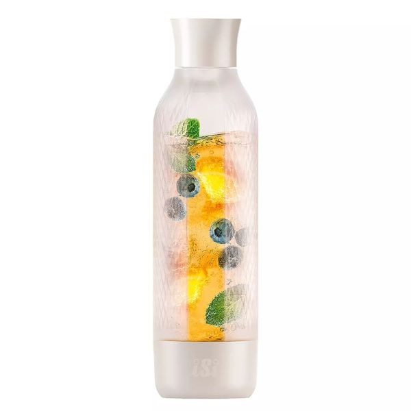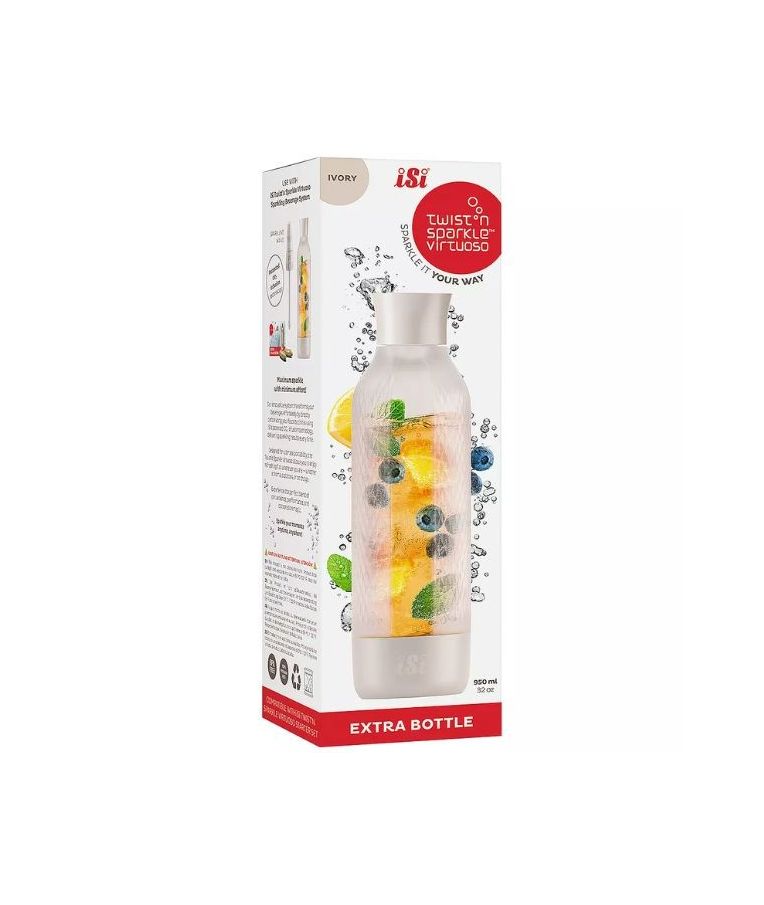Atsarginis butelis sifonui TWIST'N SPARKLE baltos spalvos – praktiškas ir patogus sprendimas norint mėgautis gaiviais, gazuotais gėrimais namuose ar HoReCa aplinkoje. Butelis skirtas naudoti su iSi Twist’n Sparkle Virtuoso sistema, leidžiančia be elektros ar laidų paruošti putojantį vandenį, sultis, ar net kokteilius. Tiesiog užpildykite butelį, įdėkite CO₂ kapsulę ir mėgaukitės natūraliu gaivumu. Puikiai tinka kūrybingiems gėrimų deriniams su vaisiais, žolelėmis ar sirupais.