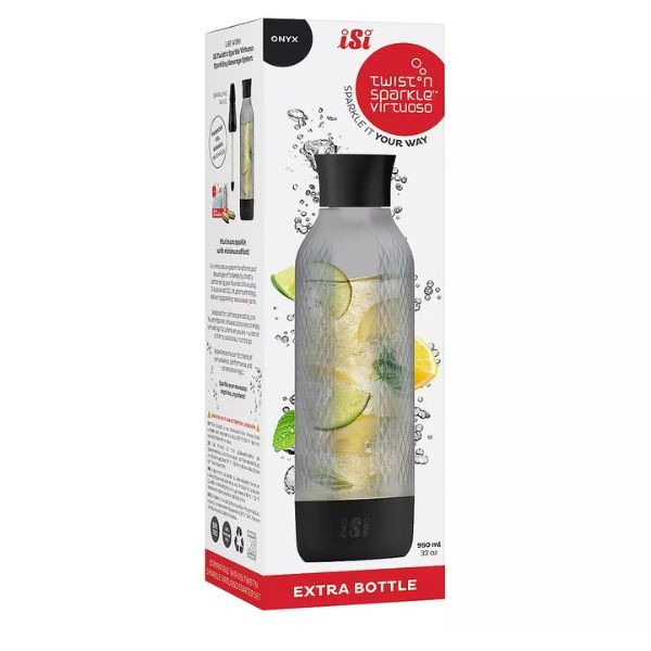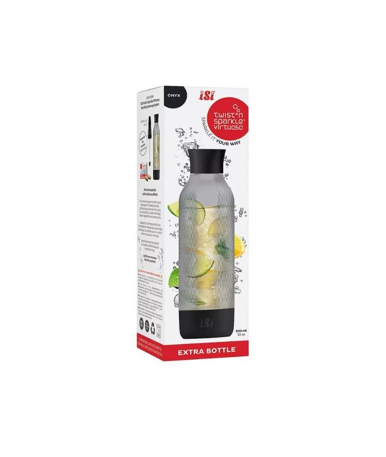 Atsarginis butelis sifonui TWIST'N SPARKLE juodos spalvos – elegantiškas ir patvarus sprendimas gėrimų gazavimui namuose ar HoReCa aplinkoje. Suderinamas su iSi Twist’n Sparkle Virtuoso sistema, leidžiančia ruošti putojantį vandenį, sultis, ar kokteilius be elektros. Juodos spalvos dizainas suteikia modernumo, o tvirta konstrukcija užtikrina ilgaamžiškumą ir patikimumą. Puikus pasirinkimas kūrybingiems gėrimų deriniams su vaisiais, sirupais ar žolelėmis.