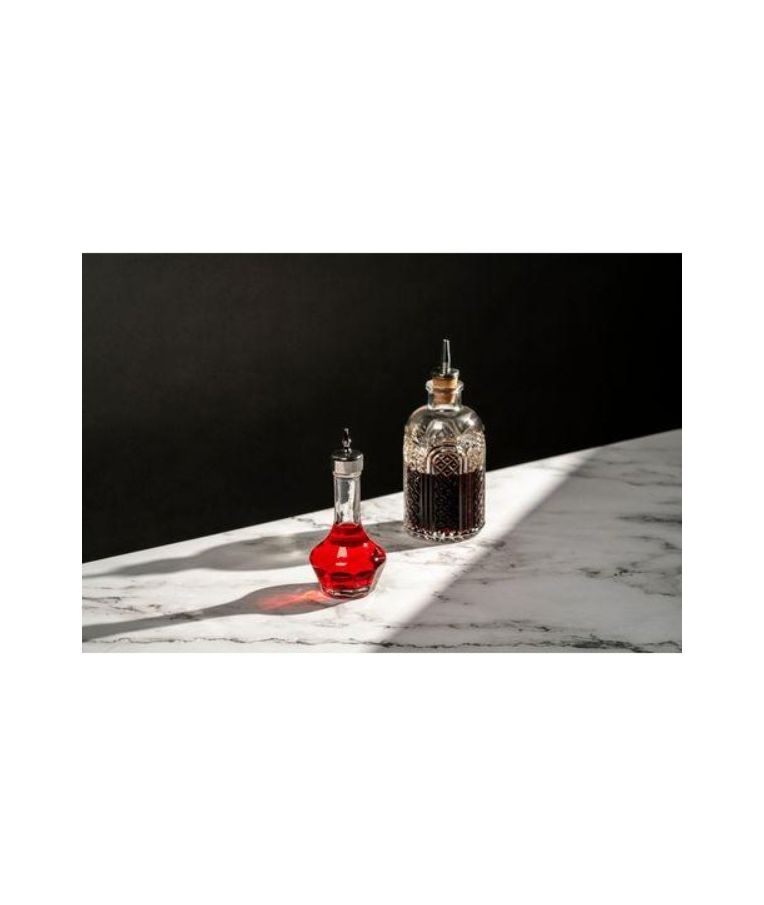 Buteliukas stiklinis lašams VINTAGE 150 ml – išskirtinio dizaino stiklinis buteliukas, skirtas preciziškam skysčių dozavimui. Puikiai tinka bitteriams, sirupams, ekstraktams ir kitiems ingredientams, naudojamiems kokteilių gamyboje. Aukštos kokybės stiklas ir autentiškas VINTAGE stiliaus dizainas suteikia profesionalų įvaizdį tiek barui, tiek namų baro kolekcijai.