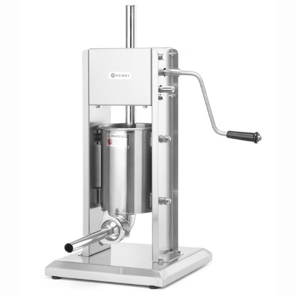 Vertikalus dešros kimštuvas HENDI 3 L – patikimas profesionalus sprendimas HORECA sektoriui, skirtas efektyviam mėsos masės pildymui į žarnas. Dviejų greičių pavara leidžia greitai pakelti stūmoklį ir tiksliai dozuoti įdarą kimšimo metu. Su maistu besiliečiančios dalys lengvai nuimamos, todėl užtikrinamas paprastas valymas ir aukšti higienos standartai. Komplekte esantys keturi skirtingo skersmens antgaliai leidžia pritaikyti kimštuvą įvairių rūšių gaminiams.