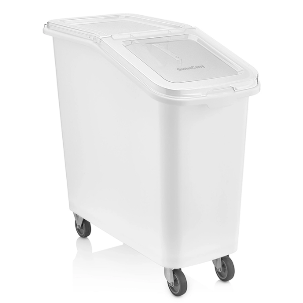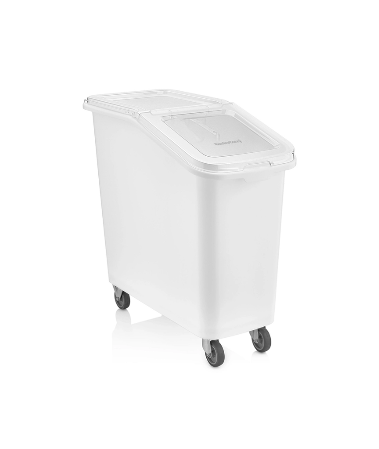 Dėžė maistui, plastikinė su dangčiu, ant ratukų 82 l – praktiška ir talpi talpykla, skirta maisto produktų laikymui bei transportavimui. Pagaminta iš aukštos kokybės, BPA neturinčio polipropileno (PP), todėl saugi sąlyčiui su maistu. Skaidrus dangtis leidžia lengvai identifikuoti turinį, o sandari konstrukcija padeda išlaikyti produktų šviežumą.