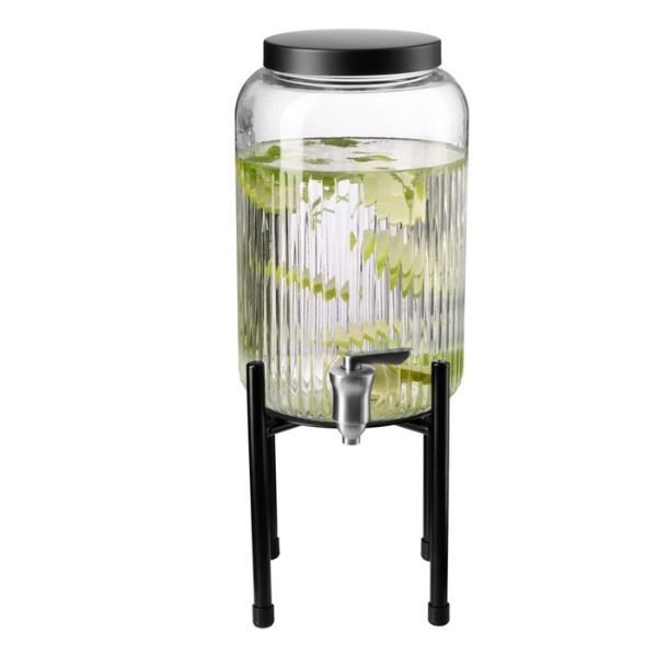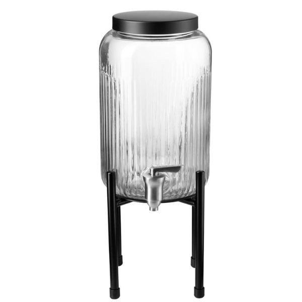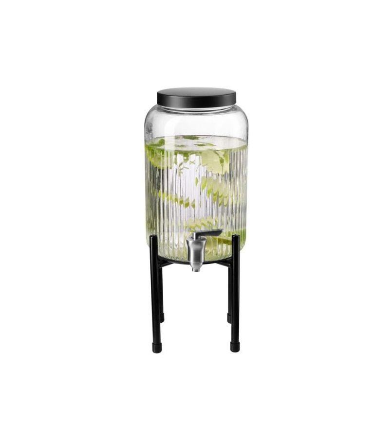 Dispenseris gėrimams su stovu INDUSTRIAL stiliaus – tai praktiškas ir estetiškas pasirinkimas tiek HoReCa sektoriui, tiek naudojimui namuose. Pagamintas iš tvirtų medžiagų – nerūdijančio plieno, metalo, silikono ir stiklo – šis dozatorius užtikrina ilgaamžiškumą ir patogų naudojimą. 3,8 l talpa idealiai tinka sultims, limonadams, vandeniui ar kitiems gaiviesiems gėrimams patiekti savitarnos zonose, pusryčių buffetuose, renginiuose ar namų šventėse. Skaidrus korpusas leidžia lengvai matyti gėrimo likutį, o stovas suteikia stabilumo bei patogią padėtį pilstant. Moderni juodos ir skaidrios spalvos kombinacija papildo įvairų interjerą – nuo industrinio iki minimalistinio.