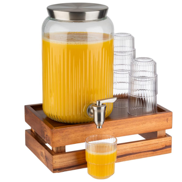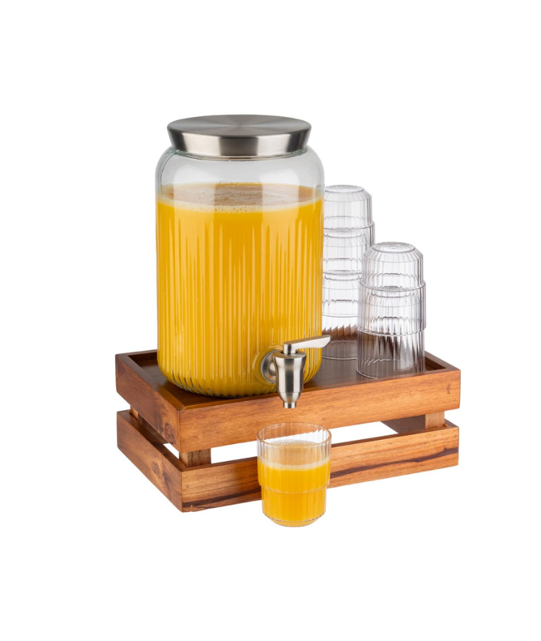 Stiklinis gėrimų dispenseris APS 3,8 L – praktiškas ir elegantiškas sprendimas gėrimų pateikimui šventėse, renginiuose ar kasdieniam naudojimui. Talpus stiklinis indas leidžia patogiai laikyti ir serviruoti vandenį, sultis, limonadą ar kitus gėrimus. Nerūdijančio plieno čiaupas ir dangtis užtikrina patvarumą bei sklandų naudojimą, o skaidrus dizainas leidžia lengvai matyti turinį. Šis dispenseris puikiai tinka tiek namams, tiek profesionaliam naudojimui kavinėse, restoranuose ar viešbučiuose.