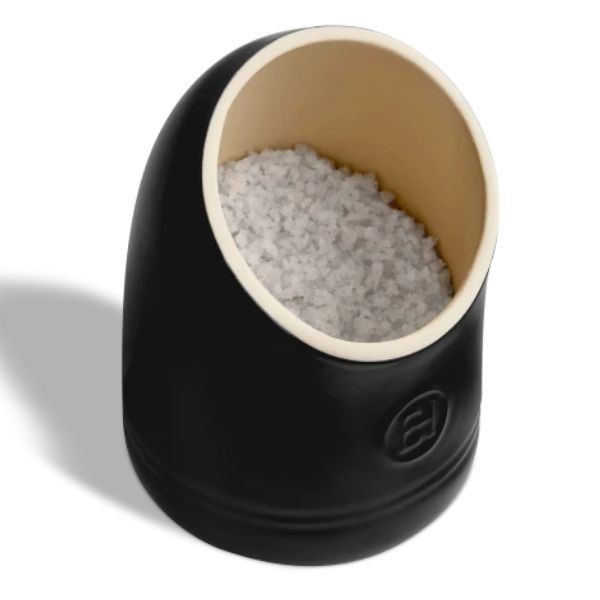 Juodos spalvos Emile Henry druskinė – originalus ir itin praktiškas virtuvės aksesuaras, skirtas patogiam kasdieniam naudojimui. Išskirtinė „rankos“ forma leidžia greitai pasiekti druską gaminant, todėl prieskoniai visada yra po ranka ant stalviršio. Neemaliuotas vidinis paviršius neleidžia stambiai druskai sukietėti ar sudaryti plutą, išlaikant ją birią ir lengvai naudojamą. Pagaminta iš aukštos kokybės HR® keramikos, druskinė yra atspari temperatūrų svyravimams ir tinkama naudoti orkaitėje, mikrobangų krosnelėje, šaldiklyje bei indaplovėje. Minimalistinis dizainas ir sodri juoda spalva puikiai dera tiek modernioje namų virtuvėje, tiek profesionalioje HoReCa aplinkoje.