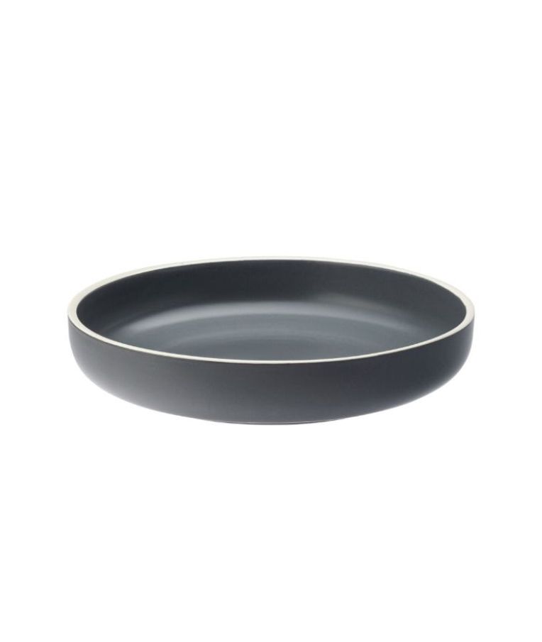 Dubenėlis FORMA Charcoal 24 cm – modernus ir minimalistinis vitrifiikuoto porceliano indas, išsiskiriantis tamsiai pilka „Charcoal“ spalvos glazūra ir ryškiu baltu kraštu. Šis spalvinis kontrastas suteikia serviravimui išskirtinumo, o žemo blizgesio paviršius pabrėžia šiuolaikinę kolekcijos estetiką. Dėl platesnės ir šiek tiek žemesnės formos dubenėlis puikiai tinka salotoms, šiltiems patiekalams, pastai ar dalijimuisi skirtiems patiekalams tiek profesionalioje HoReCa aplinkoje, tiek namuose.