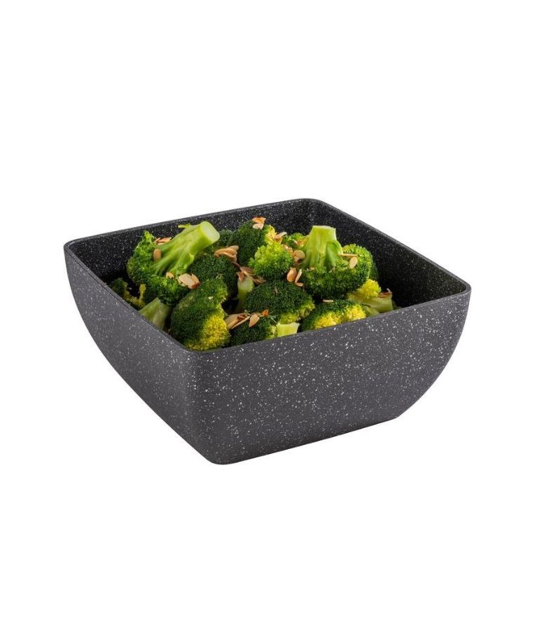 Dubuo metalinis juodos/sidabrinės spalvos FROSTFIRE 3,8 l – išskirtinio dizaino aliuminis dubuo su nelimpančia danga, skirtas profesionaliam ir universaliam naudojimui. 25 × 25 cm matmenys ir 12 cm aukštis užtikrina talpą bei patogų serviravimą, o 3,8 l tūris puikiai tinka salotoms, užkandžiams, garnyrams ar šaltų bei karštų patiekalų pateikimui.
