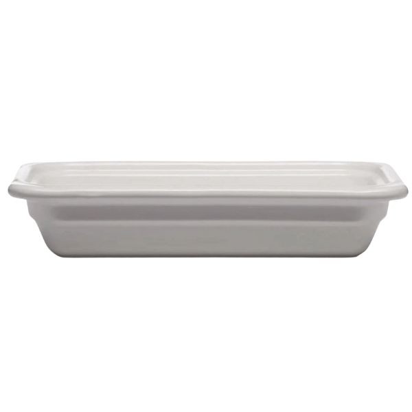 Gastroindas Forma LIGHT pilka GN 1/3 (325x176x65 mm) – elegantiškas ir patvarus keraminis indas, sukurtas profesionaliam maisto gaminimui, laikymui bei patiekimui. Pagamintas iš aukštos kokybės karščiui atsparios keramikos, kuri tolygiai paskirsto šilumą ir išlaiko patiekalų temperatūrą. Glazūruotas paviršius apsaugo nuo įbrėžimų, dėmių ir kvapų įsigėrimo. Neutralios pilkos spalvos dizainas dera prie bet kokio interjero ar serviravimo stiliaus, todėl puikiai tinka tiek HoReCa aplinkoje, tiek namuose.