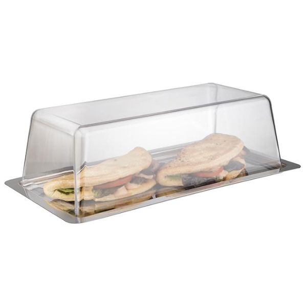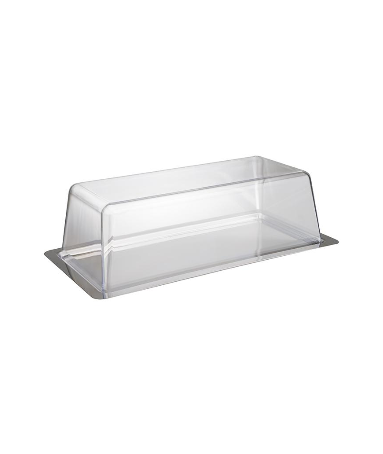 Stačiakapis padėklas su gaubtu FLASH 33 x 17 cm – praktiškas ir estetiškas sprendimas tortų, desertų ar užkandžių pateikimui bei apsaugai. Pagamintas iš nerūdijančio plieno (18/0) padėklas užtikrina tvirtumą ir ilgaamžiškumą, o skaidrus polistireno gaubtas leidžia patogiai matyti turinį ir kartu apsaugo nuo išorinių veiksnių. Dėl savo kompaktiško dydžio ir elegantiško dizaino šis indas puikiai tinka tiek namų virtuvei, tiek profesionaliam naudojimui kavinėse, restoranuose ar kepyklose.