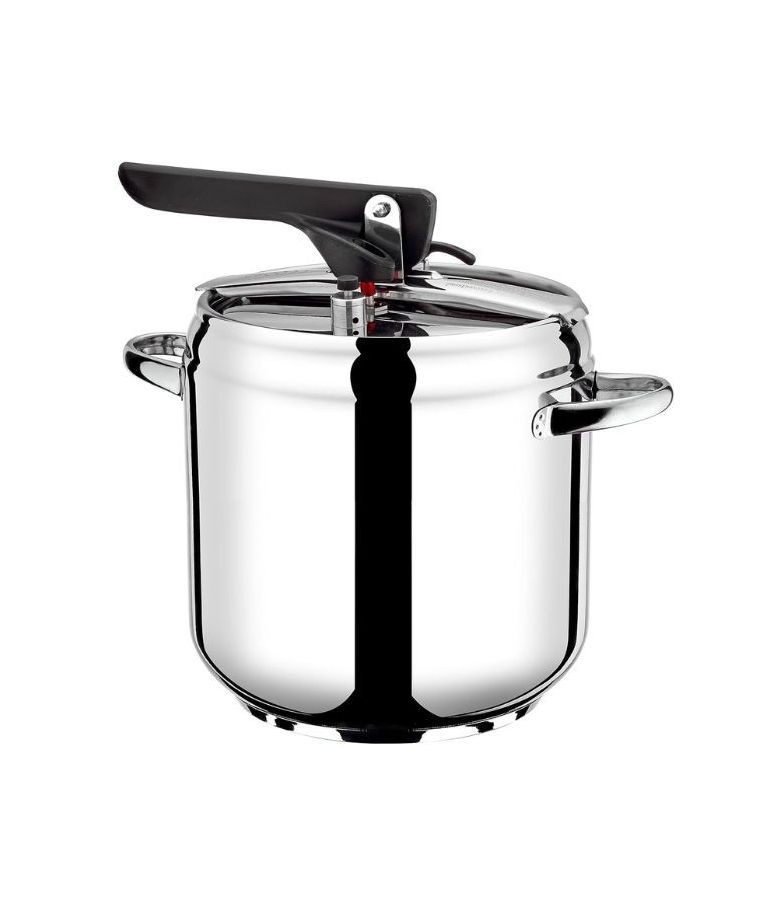 Greitpuodis POWER (5 l) – aukštos kokybės 18/10 nerūdijančio plieno indas, sukurtas saugiam ir greitam maisto ruošimui tiek namuose, tiek HoReCa aplinkoje. Bajonetinė uždarymo sistema užtikrina sandarų dangčio fiksavimą, o ergonomiškos juodo bakelito rankenos su geltonais akcentais apsaugo nuo įkaitimo. Trijų sluoksnių termodifuzinis dugnas garantuoja optimalų šilumos paskirstymą ir puikiai tinka indukcinei, elektrinei, dujinei bei stiklo keramikos viryklėms.