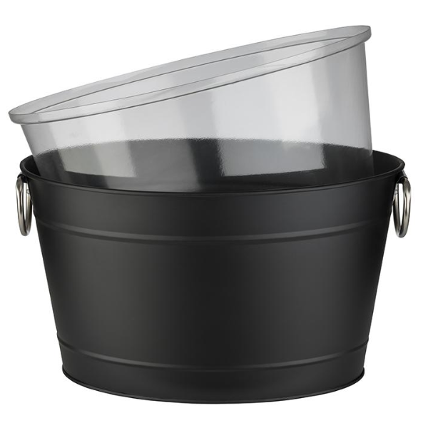 Indas gėrimams su plastikiniu įdėklu TIN 11 l – talpus ir praktiškas sprendimas gėrimų laikymui bei atšaldymui renginiuose, šventėse ar HoReCa aplinkoje. Pagamintas iš cinkuoto metalo, šis indas pasižymi tvirtumu ir ilgaamžiškumu, o vidinis plastikinis įdėklas užtikrina lengvesnę priežiūrą ir higieną. Didelė talpa leidžia patogiai laikyti ledą kartu su gėrimais, todėl jis puikiai tinka butelių ar skardinių aušinimui. Modernus juodos spalvos dizainas lengvai pritaikomas įvairiuose interjeruose – nuo namų vakarėlių iki profesionalių barų ar restoranų.