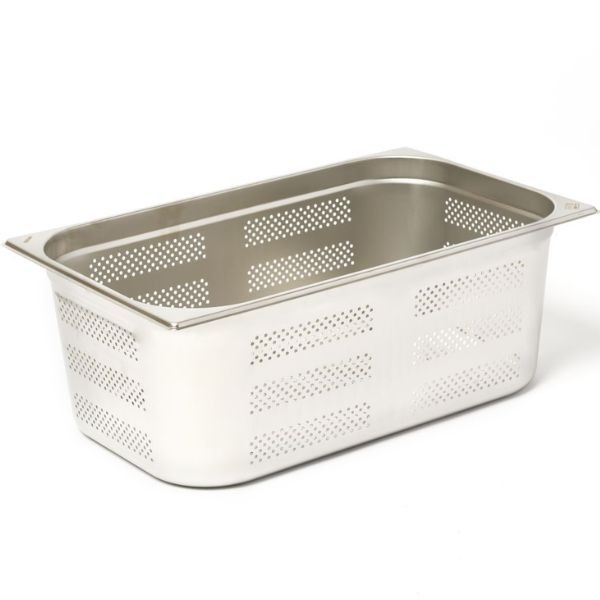 Perforuotas GN 1/1 indas, 200 mm aukščio – tai profesionalus maisto ruošimo ir laikymo indas, skirtas intensyviam HoReCa sektoriaus naudojimui. Pagamintas iš aukštos kokybės nerūdijančio plieno, jis atsparus karščiui, korozijai ir mechaniniams pažeidimams. Perforacijos leidžia efektyviai nutekėti skysčiams, todėl šis indas puikiai tinka daržovėms, makaronams, mėsai, žuviai ar garo krosnių procesams.