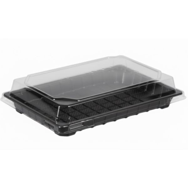 Juodi „SUSHI 302 COMBO“ indeliai su dangteliu pagaminti iš tvirto, aukštos kokybės OPS plastiko, užtikrinančio patikimą sandarumą ir ilgaamžiškumą. Šie indeliai skirti tiesioginiam sąlyčiui su maistu ir atitinka griežtus Europos Sąjungos standartus. Gamyboje naudojamos modernios technologijos garantuoja, kad plastike nėra kenksmingų medžiagų ar junginių, galinčių paveikti maisto kokybę. Talpa 400 ml, ilgis 226 mm, plotis 153 mm – puikus pasirinkimas sushi, užkandžiams ar išsinešimui. Tinka naudoti HoReCa sektoriuje ir namuose.