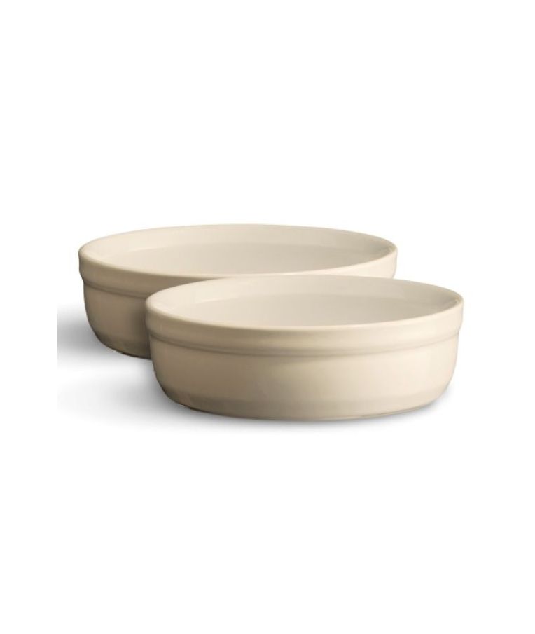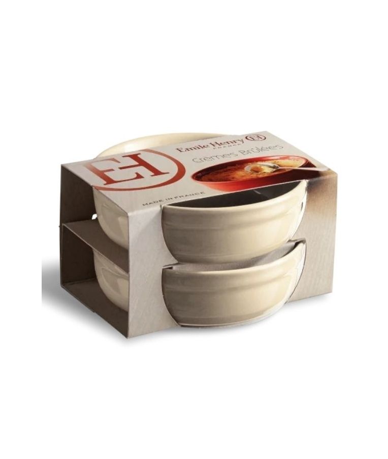 Kreminės spalvos Emile Henry indeliai (2 vnt.) – specialiai sukurti crème brûlée ir kitų nedidelių porcijų patiekalų gamybai bei pateikimui. 150 ml talpos, 13 cm skersmens ir negilios formos indeliai užtikrina tolygų šilumos pasiskirstymą kepimo metu, todėl desertai ar užkandžiai iškepa vienodai ir nepraranda tekstūros. Plokščias paviršius idealiai tinka naudoti degiklį ar kaitinamą apvalų įrankį karamelizuojant cukraus sluoksnį. Pagaminti iš aukštos kokybės HR® keramikos, indeliai atsparūs temperatūroms nuo –20 °C iki +270 °C, tinkami naudoti orkaitėje, mikrobangų krosnelėje, šaldiklyje bei indaplovėje. Lengvai sukraunami vienas ant kito, jie padeda taupyti vietą šaldytuve ar virtuvės lentynose.