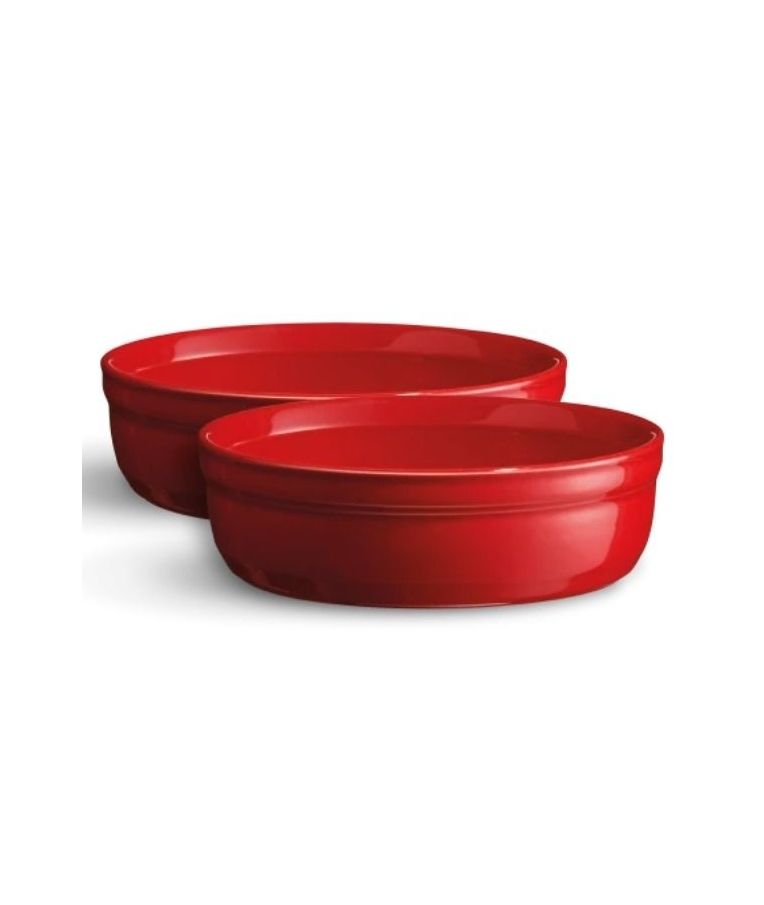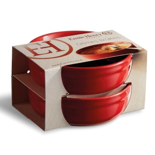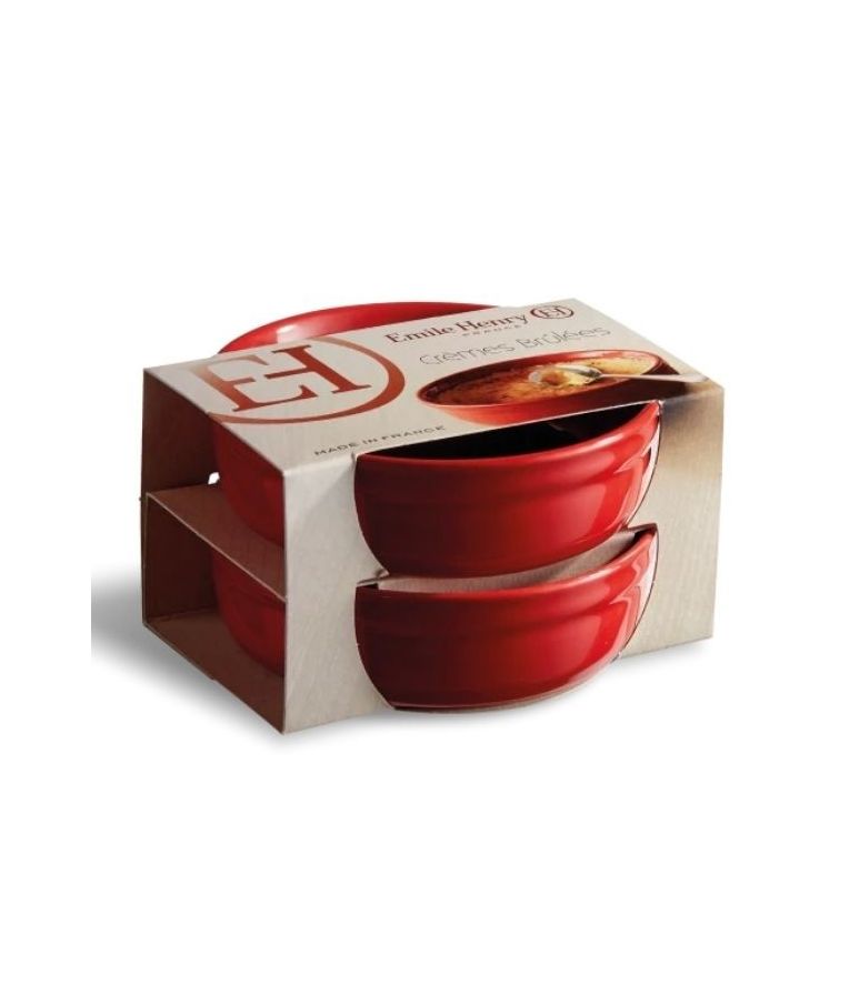 Raudoni Emile Henry indeliai – puikus pasirinkimas crème brûlée ir kitiems mažų porcijų patiekalams tiek namuose, tiek HoReCa aplinkoje. 150 ml talpos, 13 cm skersmens indeliai turi plokščią paviršių, kuris idealiai tinka naudoti degiklį ar įkaitintą apvalų įrankį cukraus sluoksnio karamelizavimui. Negili forma užtikrina tolygų šilumos pasiskirstymą kepimo metu, todėl desertai ir užkandžiai iškepa vienodai ir nepraranda tekstūros. Indeliai lengvai sudedami vienas ant kito, leidžiantys taupyti vietą šaldytuve ar virtuvės lentynose. Ryški raudona spalva suteikia patiekalams vizualinį akcentą ir leidžia juos patiekti tiesiai iš indo, derinant funkcionalumą ir estetiką.