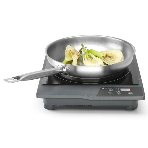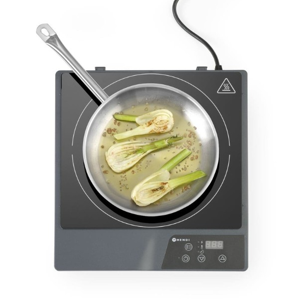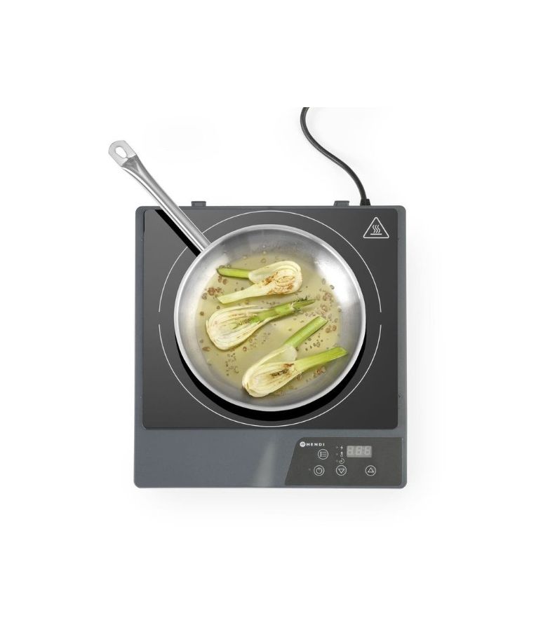 Indukcinė kaitlentė HENDI Kitchen Line – kompaktiška ir patikima elektrinė kaitlentė, sukurta patogiam ir efektyviam naudojimui. ABS plastiko korpusas užtikrina lengvumą bei atsparumą kasdieniam naudojimui, o elektroninis galingumo, temperatūros ir laiko reguliavimas leidžia tiksliai pritaikyti gaminimo sąlygas. Kaitlentė greitai reaguoja į temperatūros pokyčius, todėl galima lengvai pereiti nuo intensyvaus kaitinimo prie švelnaus palaikymo režimo.