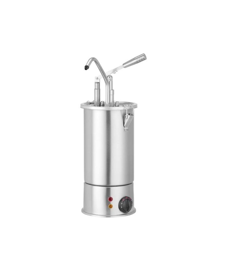 Padažo šildytuvas su dozatoriumi HENDI 3 L 230 V 900 W – patikimas sprendimas restoranams, viešbučiams ir savitarnos bufetams. Nerūdijančio plieno konstrukcija, reguliuojama temperatūra iki 90 °C ir apsauga nuo perkaitimo užtikrina saugų ir efektyvų padažų tiekimą. Įmontuotas siurblys leidžia dozuoti tikslias 35 ml porcijas.