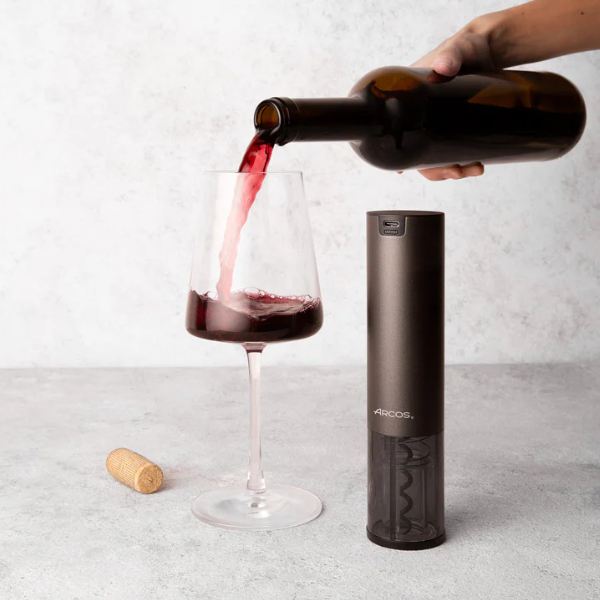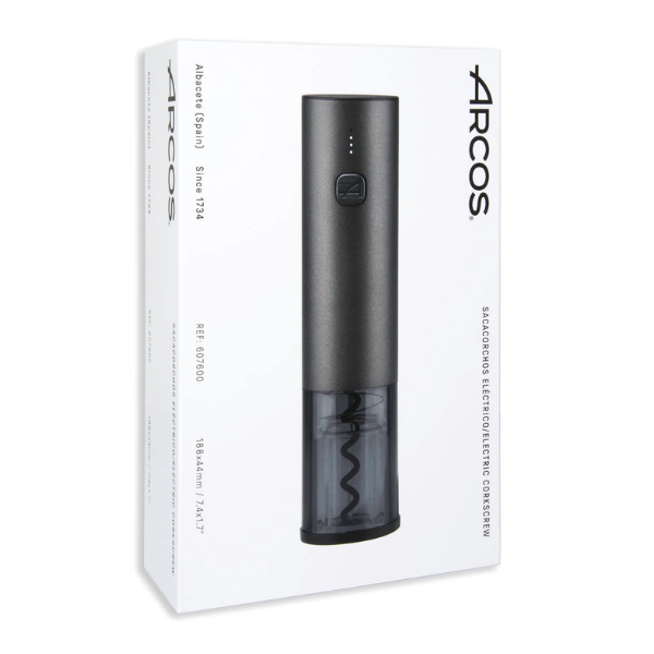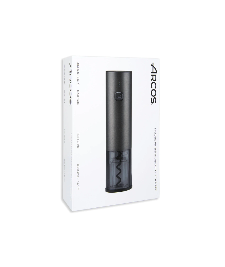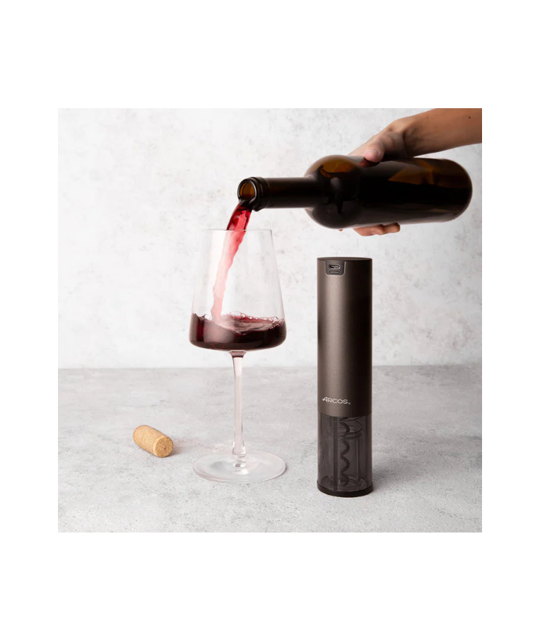 Elektrinis kamščiatraukis buteliui ARCOS – modernus ir elegantiškas sprendimas greitam bei patogiam vyno atidarymui. Metalinis korpusas su tamsiai pilka apdaila suteikia prietaisui išskirtinį dizainą, puikiai tinkantį tiek namų virtuvei, tiek HoReCa aplinkai. Vos vieno mygtuko paspaudimu kamštis ištraukiamas greičiau nei per 8 sekundes, o integruotas mėlynas LED apšvietimas leidžia stebėti procesą.