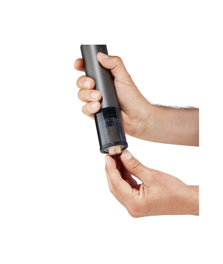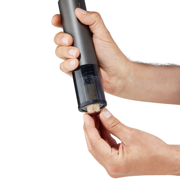 Ergonomiškas dizainas užtikrina patogų laikymą, o tyliai veikiantis variklis leidžia mėgautis sklandžiu naudojimu. Komplekte esantis folijos pjaustytuvas palengvina butelio paruošimą, o USB-C įkrovimas užtikrina greitą ir patogų naudojimą. Pilnai įkrautas įrenginys leidžia atidaryti kelis butelius iš eilės, todėl yra praktiškas pasirinkimas tiek kasdieniam naudojimui, tiek renginiams ar restoranams.