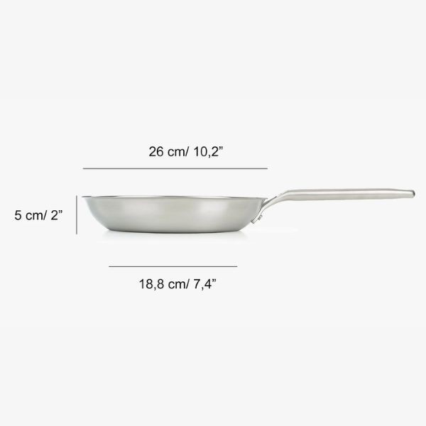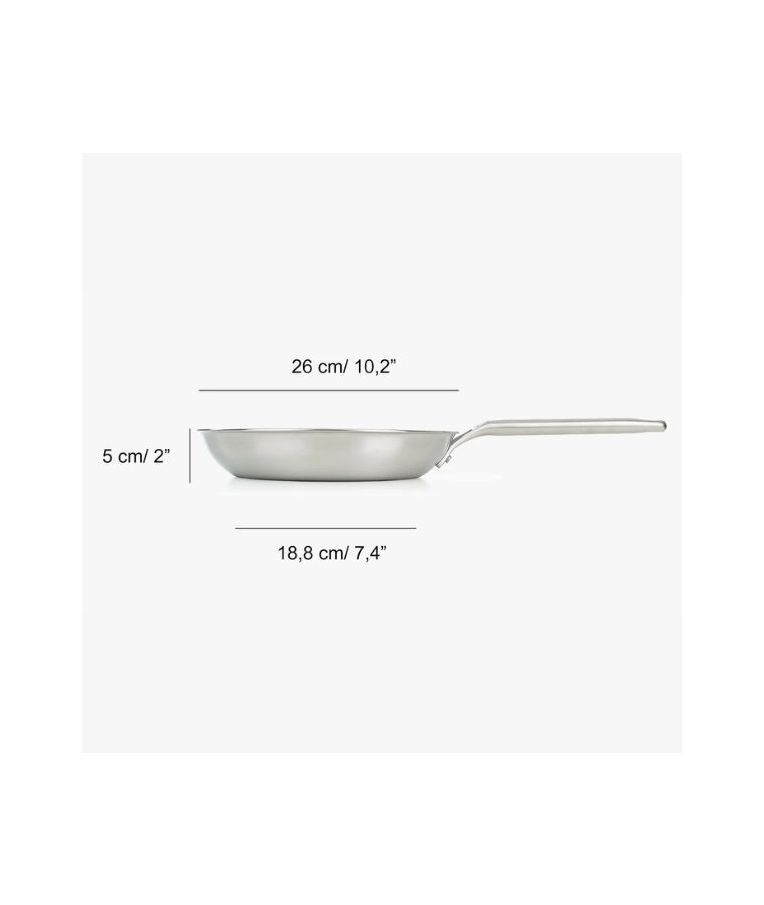 Nerūdijančio plieno keptuvė SAMOA INOX (26 cm) – profesionalaus lygio tri-sluoksnė (tri-ply) keptuvė, skirta natūraliam, sveikesniam ir ilgalaikiam gaminimui. Pagaminta iš 304 nerūdijančio plieno su aliuminio branduoliu ir indukcijai tinkamu 430 plienu, ši konstrukcija užtikrina tolygų šilumos pasiskirstymą visame paviršiuje. Keptuvė yra be PFAS (PFOA / PTFE / PFOS) ir neturi jokios nepridegančios dangos, todėl gaminimo rezultatai priklauso tik nuo teisingos technikos – jokios chemijos ir visiška atsparumo metaliniams įrankiams laisvė.