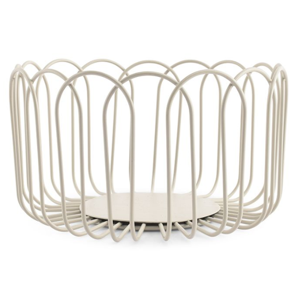 Krepšelis FLORES 19xH10 cm pilkas – stilingas ir praktiškas metalinis vielinis krepšelis iš Ona Flores kolekcijos, skirtas tvarkingam ir estetiškam maisto ar smulkių daiktų laikymui. Pagamintas iš tvirto metalo, šis apvalus krepšelis pasižymi ilgaamžiškumu ir moderniu dizainu, o pilka spalva lengvai dera prie įvairių interjero stilių. Puikiai tinka vaisiams, duonai ar užkandžiams laikyti ant virtuvės stalviršio ar valgomojo stalo. Dėl savo universalumo krepšelis pritaikytas tiek namams, tiek HoReCa sektoriui – kavinėms, restoranams ar viešbučiams, kur svarbus tvarkingas ir estetiškas pateikimas.