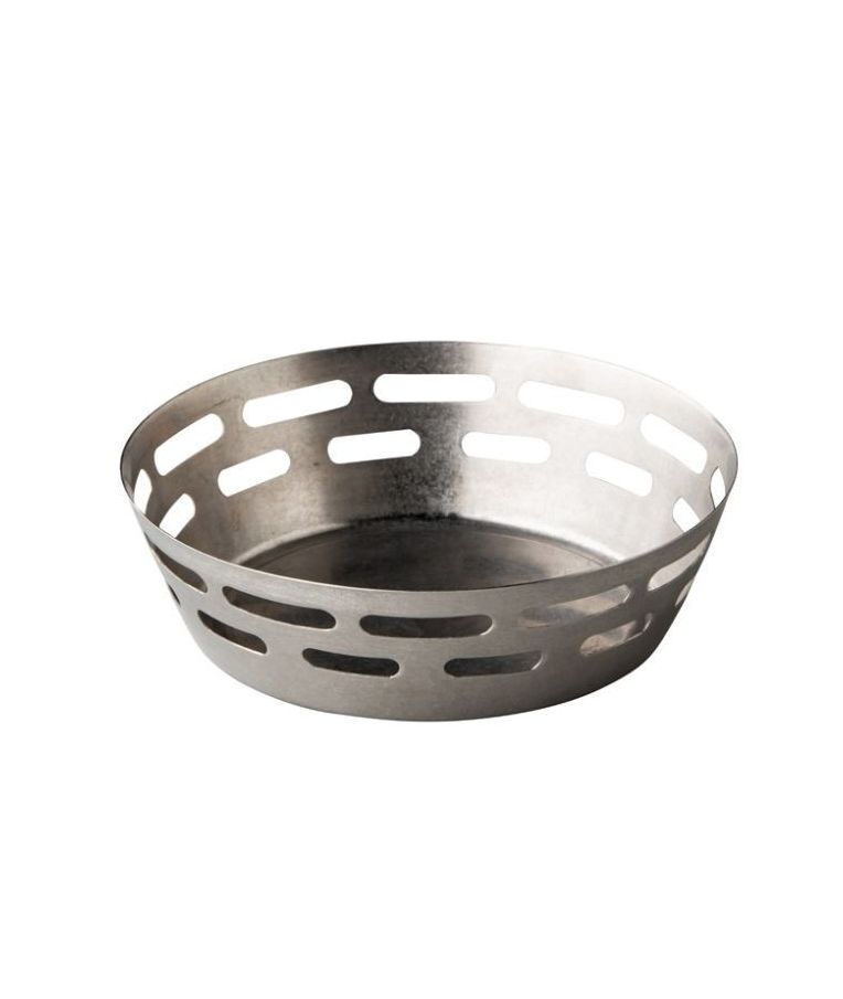 Apvalus nerūdijančio plieno krepšelis „Vintage Steel“ – stilingas ir tvirtas stalo aksesuaras užkandžiams ar duonai patiekti.