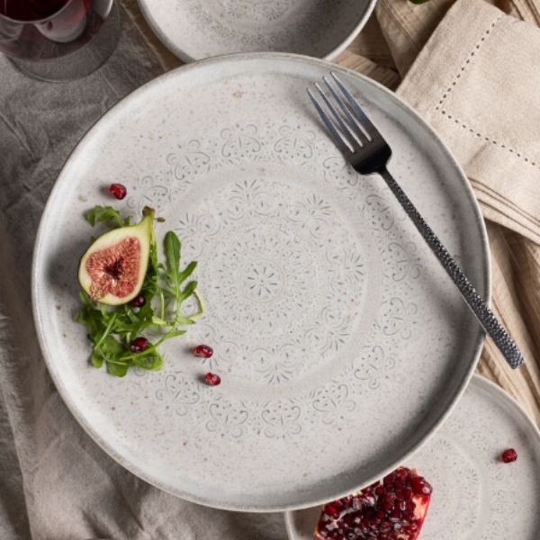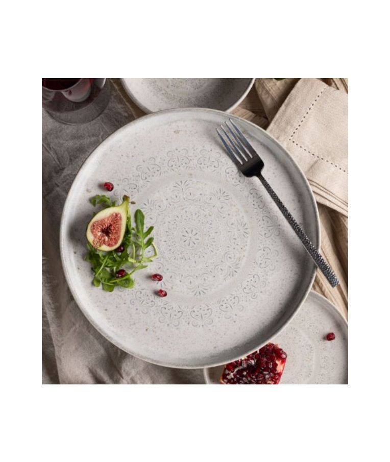 Lėkštė CARO – elegantiško dizaino akmens masės lėkštė, dekoruota subtiliu ornamentiniu raštu ir švelnia spalvų palete. 28 cm skersmens lėkštė puikiai tinka pagrindinių patiekalų pateikimui, išryškinant maisto estetiką ir stalo serviravimą. Skaitmeniniu būdu atspaustas raštas suteikia lėkštei išskirtinumo, o tvirta akmens masė užtikrina ilgaamžiškumą ir atsparumą intensyviam naudojimui. Puikiai tinka restoranams, kavinėms, viešbučiams bei stilingam namų stalui.