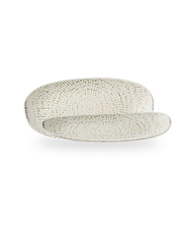 Stačiakampė lėkštė Cascade Taupe 30×15 cm – elegantiško, šiuolaikiško dizaino indas, dekoruotas subtiliu „Cascade“ raštu, kuris sklinda iš centrinio taško ir natūraliai įrėmina patiekalą. Šviesiai rusvas taupe atspalvis ir organiška forma suteikia stalo serviravimui šilumos, modernumo ir išskirtinumo. Kiekviena lėkštė dėl unikalaus marginimo yra nepakartojama, todėl idealiai tinka kuriant įdomius, išskirtinius pateikimus.