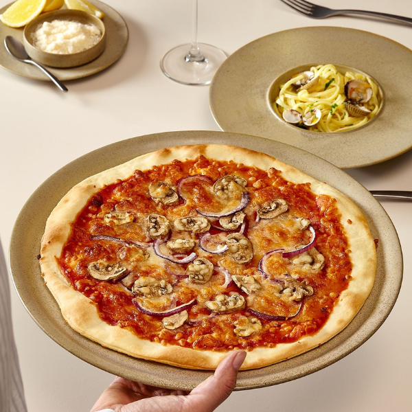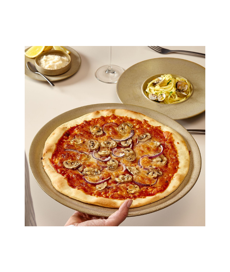 Porcelianinė lėkštė CIRRO BEIGE 27 cm – su reaktyvine glazūra, tinkama pagrindiniams patiekalams.