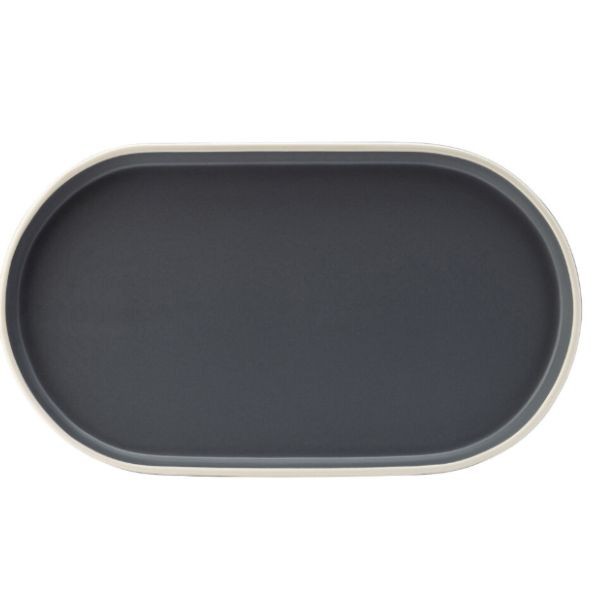 Lėkštė FORMA Charcoal 31 × 17,5 cm – elegantiškos pailgos formos vitrifiikuoto porceliano serviravimo lėkštė, sukurta moderniam, skandinavišku stiliumi įkvėptam stalo pateikimui. Tamsiai pilka „Charcoal“ glazūra kontrastuoja su ryškiu baltu kraštu, suteikdama išskirtinį vizualinį efektą ir pabrėždama patiekalų spalvas. Dėl savo formos lėkštė idealiai tinka užkandžiams, desertams, degustaciniams deriniams, sushi ar kūrybiškiems patiekalams.