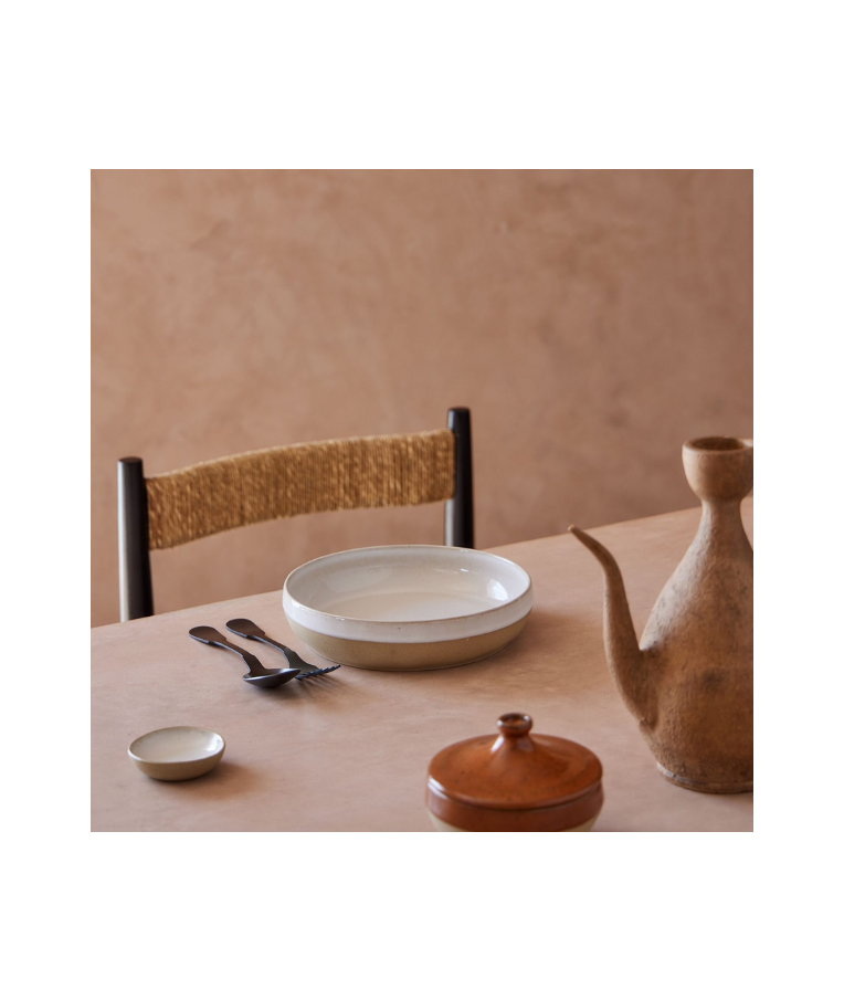Lėkštės vidus yra glazūruotas, o išorė palikta natūrali, neglazūruota, suteikianti autentišką ir išskirtinį charakterį. Reaktyvinė glazūra sukuria unikalius paviršiaus raštus, todėl kiekviena lėkštė yra savita. Gili forma puikiai tinka sriuboms, troškiniams, makaronams ar kitiems patiekalams patiekti.