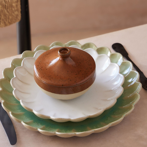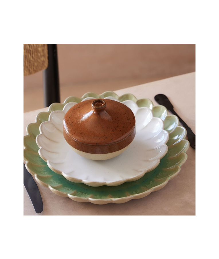 Vidinė lėkštės dalis padengta blizgia glazūra, o išorė išlaiko natūralią, neglazūruotą tekstūrą, sukuriant išskirtinį vizualinį kontrastą. Pagaminta iš akmens masės, lėkštė pasižymi atsparumu dėmėms ir smūgiams bei yra ilgaamžė. Lėkštė tinkama naudoti orkaitėje, mikrobangų krosnelėje, šaldiklyje bei plauti indaplovėje.