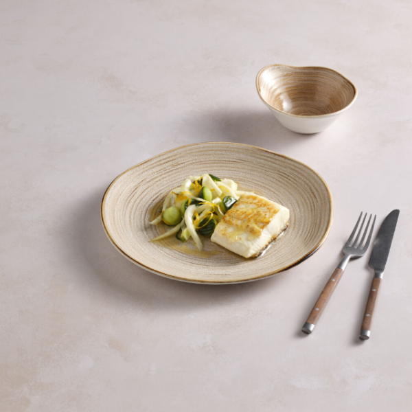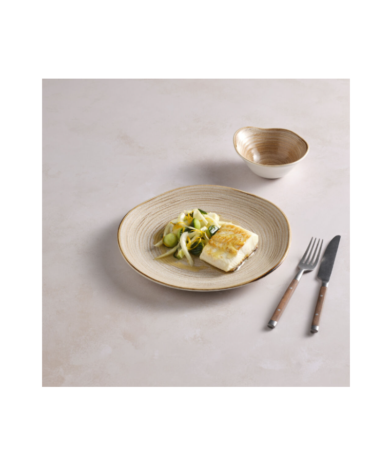 „Fuse Sable“ glazūra išsiskiria šiltais, žemiškais tonais, suteikiančiais natūralumo ir jaukumo pojūtį. Pusiau matinis paviršius ir lengvai tekstūruotas kraštas kuria rankų darbo estetiką, todėl lėkštė puikiai tinka tiek moderniems, tiek klasikiniams stalo serviravimo sprendimams.