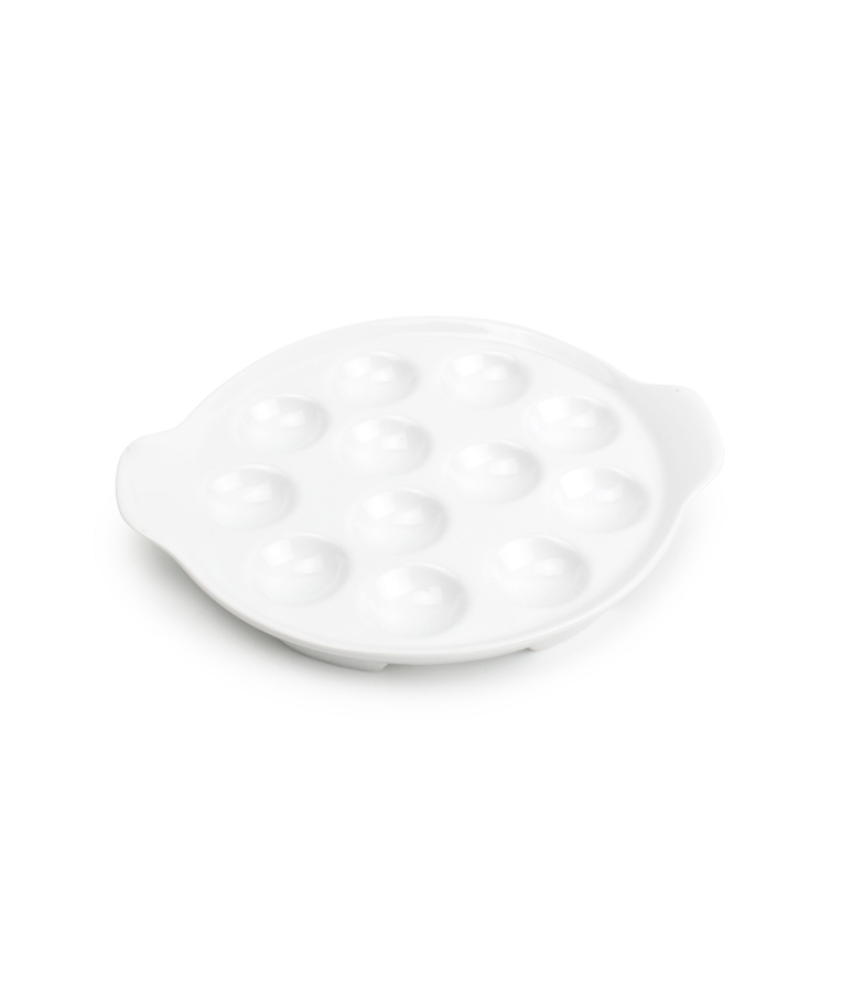 Lėkštė sraigėms APPETITE 19,5 cm (12 vietų) – klasikinio dizaino balto porceliano lėkštė, skirta profesionaliam escargot patiekimui. Specialiai suformuotos 12 įdubų leidžia patogiai ir estetiškai pateikti sraiges, išlaikant tvarkingą ir patrauklią serviruotę. Aukštos kokybės porcelianas užtikrina atsparumą intensyviam naudojimui, todėl ši lėkštė puikiai tinka restoranams, bistro ar viešbučiams, taip pat gurmaniškų patiekalų mėgėjams namuose. Universalus baltas dizainas lengvai dera su įvairiais stalo serviravimo stiliais. Galima plauti indaplovėje.