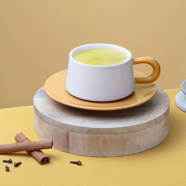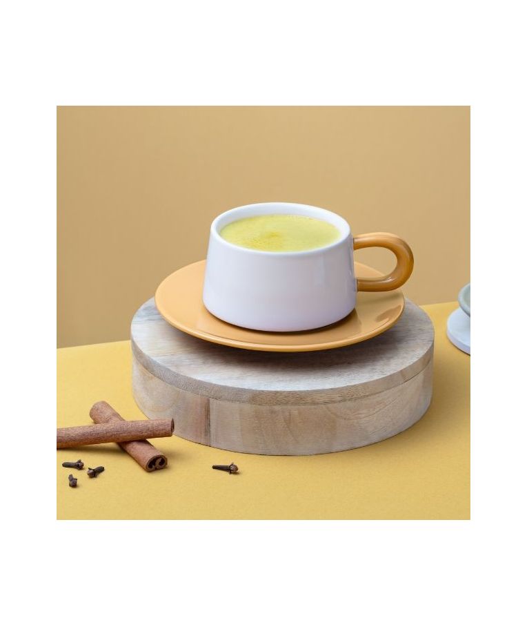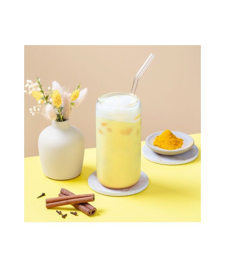 GOLDEN LATTE milteliai 350 g – subalansuotas prieskonių mišinys su ciberžole, cinamonu, gvazdikėliais ir imbieru, žinomais dėl savo antioksidacinių savybių. Šis veganiškas gėrimo mišinys be dirbtinių dažiklių ir kvapiųjų medžiagų suteikia natūralų aukso atspalvį ir šildantį skonį. Lengvai paruošiamas – tereikia 2 arbatinių šaukštelių (10 g) į 200 ml pieno ar augalinio gėrimo. Puikus pasirinkimas tiek karštas, tiek šaltas, pagamintas Prancūzijoje.
