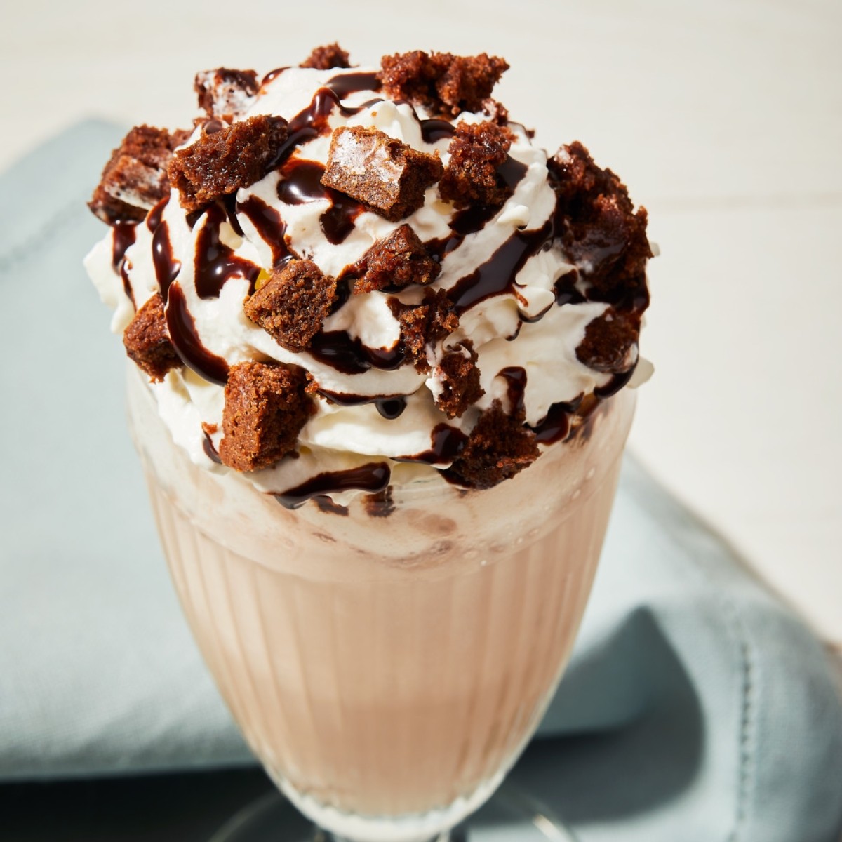 Šokoladinis brownie pieno gėrimas. Kreminis deserto receptas
