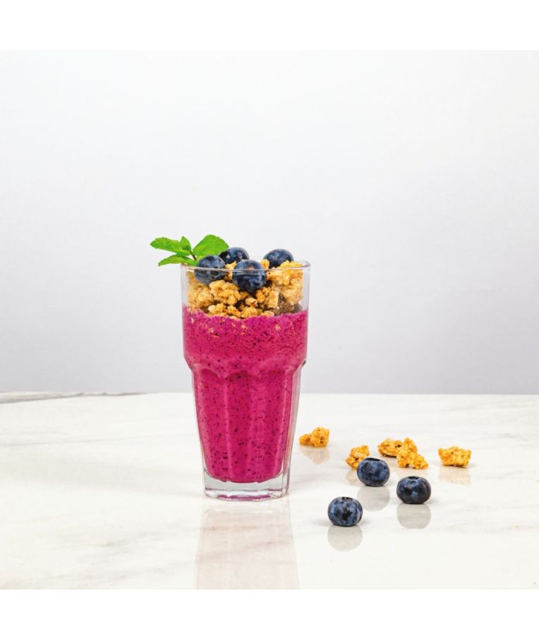 Gilus ir išraiškingas uogų skonis, pasižymintis saldžiu, šiek tiek rūgščiu profiliu bei sodria tamsiai violetine spalva. Jo aromatas primena ką tik nuskintas laukines gervuoges, suteikdamas gėrimams natūralumo ir elegancijos.