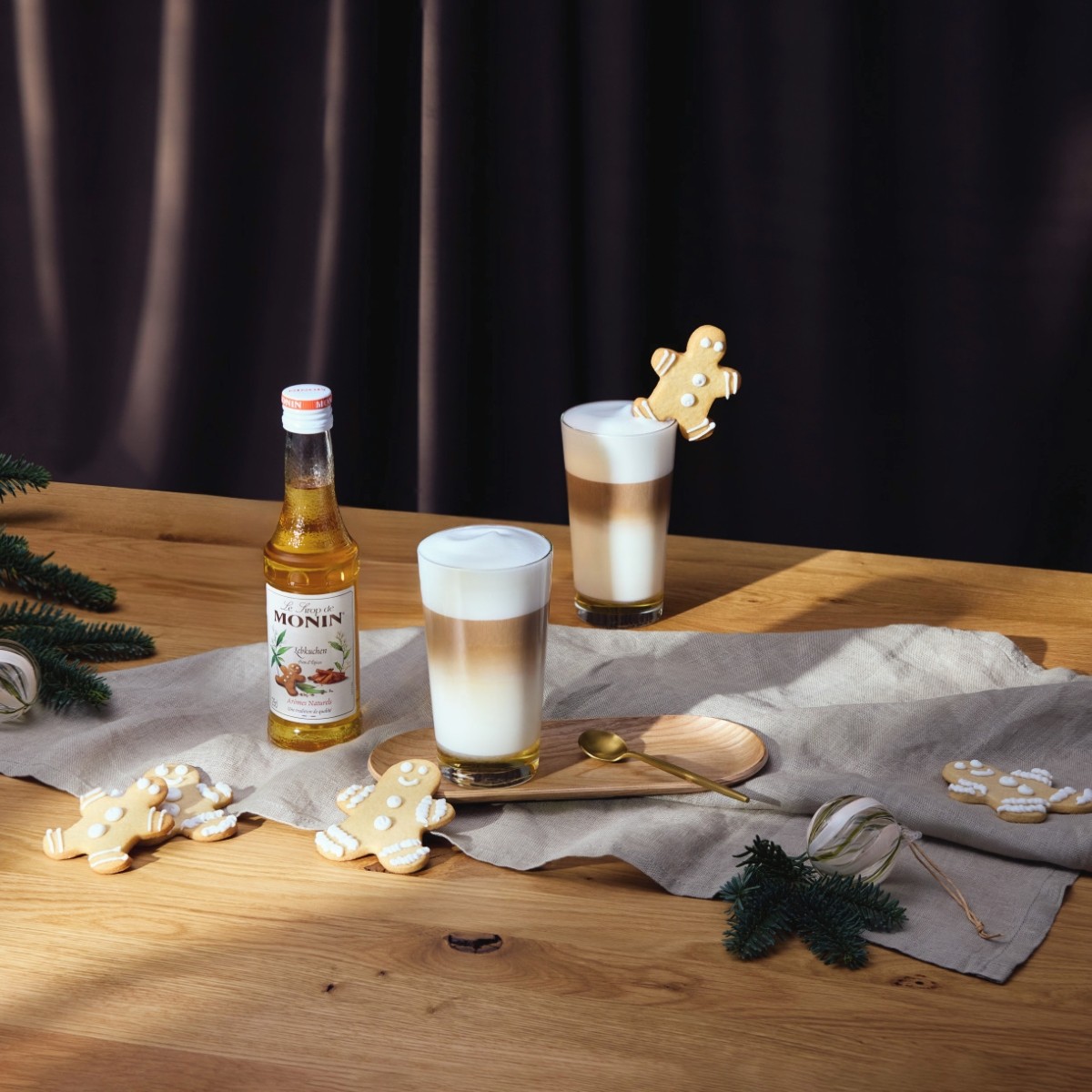 Į puodelį įpilti MONIN Imbierinių meduolių sirupą, užpilti kava ir karštu pienu, lengvai išmaišyti. Papuošti plakta grietinėle ir pabarstyti smulkintais imbieriniais sausainiais.