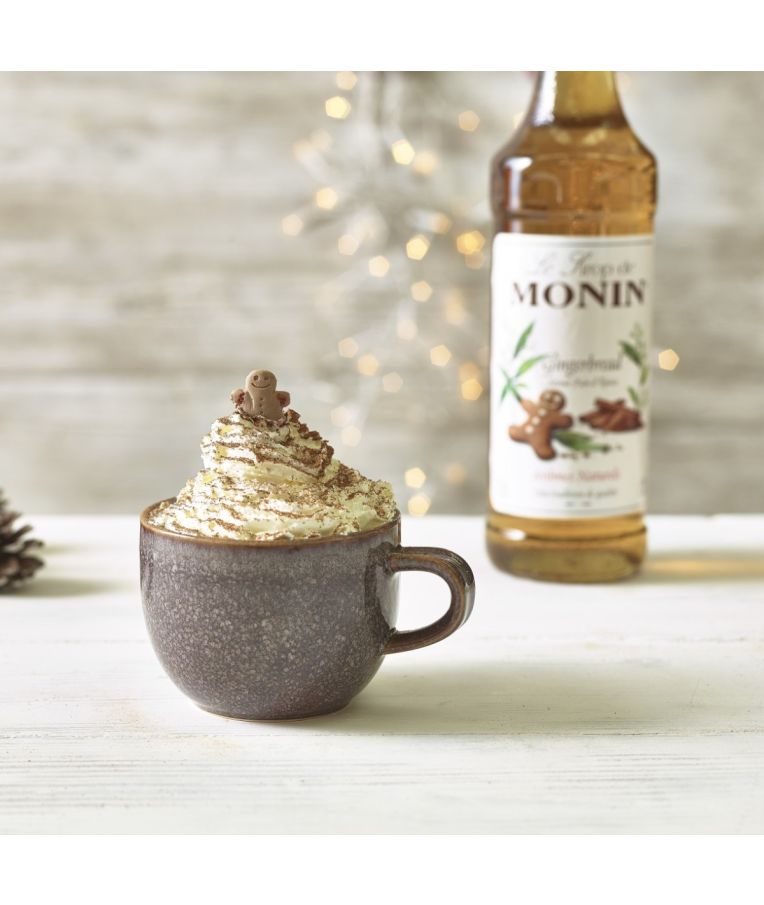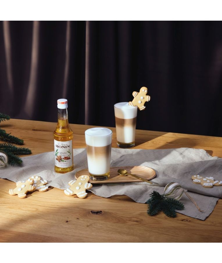 Į puodelį įpilti MONIN Imbierinių meduolių sirupą, užpilti kava ir karštu pienu, lengvai išmaišyti. Papuošti plakta grietinėle ir pabarstyti smulkintais imbieriniais sausainiais.