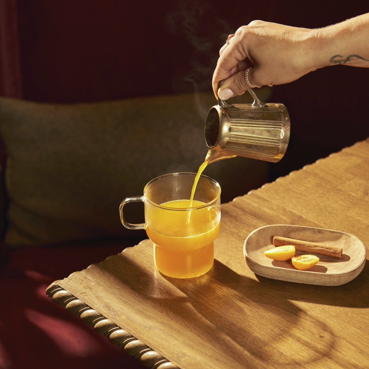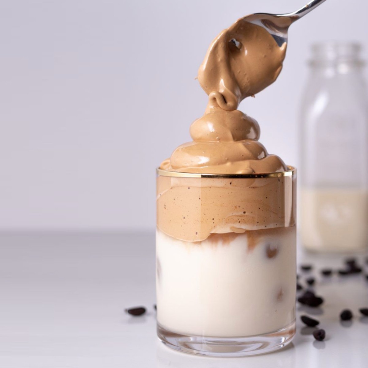 150 ml karšto pieno arba augalinio gėrimo