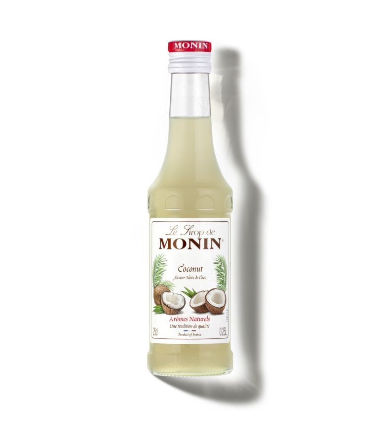 Riešutinė kokospalmė auga daugiau kaip 80 tropinėse ir subtropinėse šalyse, tokiose kaip Indonezija, Indija ir Tailandas, kur kokoso riešutas skaitomas nepakeičiamu geriu. Keliose skirtingose kalbose kokospalmės pavadinimas reiškia, kad visos šio medžio dalys yra naudingos. Itin universalus, intensyvus ir saldus kokoso skonis puikiai dera su kitais saldžiais, karčiais ir sūriais skoniais. Kokosas naudojamas daugelyje sričių, pradedant nuo kulinarijos ir baigiant grožio produktais, kuriuose naudojamas kokosų aliejus skaitomas puikiu drėkikliu. Taip pat kokosas yra bene pirmas vaisius, kuris ateina į galvą kai ieškome ko nors kreminio... MONIN kokosų sirupas perduoda saldų, pienišką kokoso skonį, todėl be abejo pagerins visus jūsų alkoholinius ar nealkoholinius gėrimus. Pasinerkite į saldų, egzotišką pasaulį!