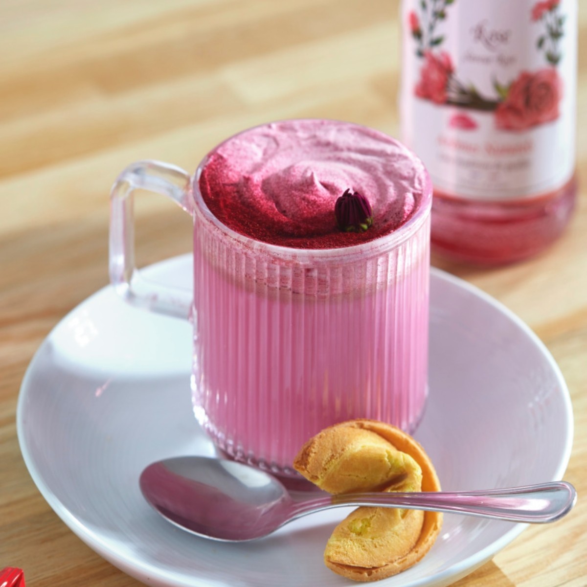 Elegantiškas ir rafinuotas skonis, įkvėptas švelnių rožių žiedlapių aromato. Šis sirupas išsiskiria švelniu saldumu, gėlišku kvapu ir ryškia, šviesiai rožine spalva, suteikiančia gėrimams išskirtinumo bei vizualinio žavesio.