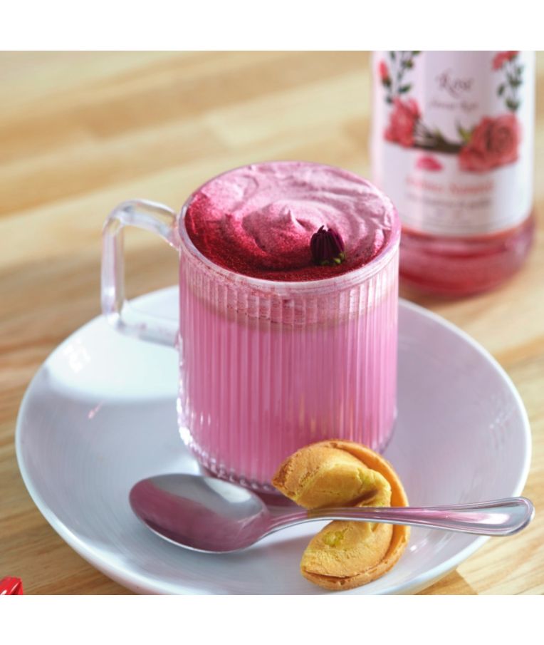 Elegantiškas ir rafinuotas skonis, įkvėptas švelnių rožių žiedlapių aromato. Šis sirupas išsiskiria švelniu saldumu, gėlišku kvapu ir ryškia, šviesiai rožine spalva, suteikiančia gėrimams išskirtinumo bei vizualinio žavesio.