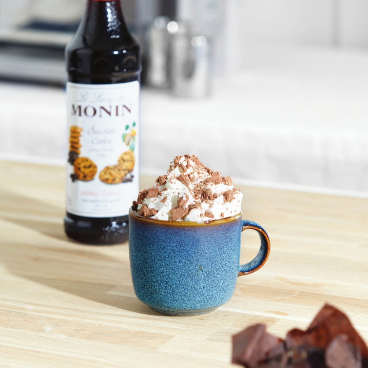 Į puodelį įpilti MONIN Šokoladinių sausainių sirupą, užpilti kava ir karštu pienu. Lengvai išmaišyti, papuošti plakta grietinėle ir pabarstyti trupintais sausainiais.