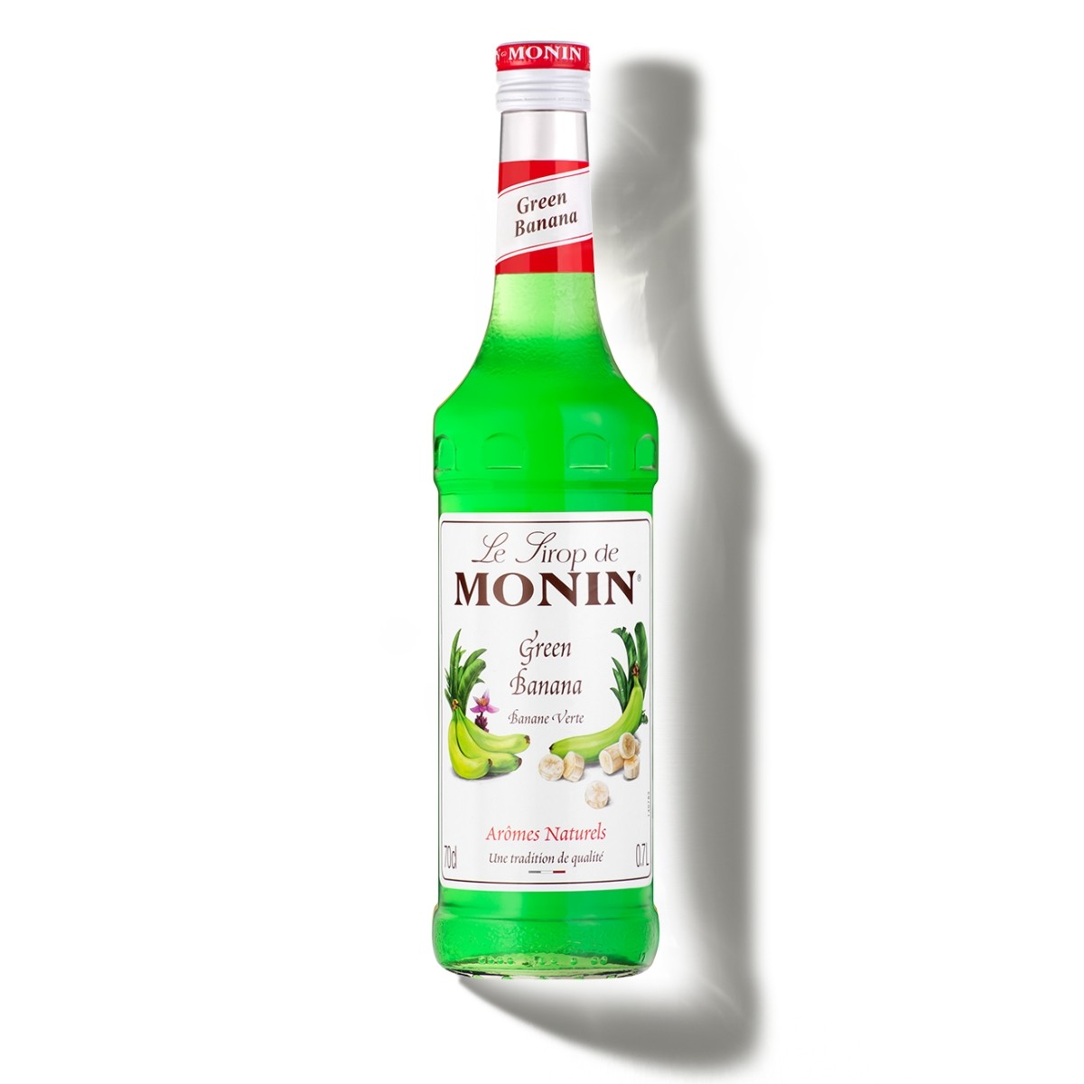 MONIN Žalių bananų sirupas išsiskiria savo ryškiai žalia spalva ir natūralia tekstūra, todėl puikiai dera su citrusiniais, kokosų, braškių ar vanilės skoniais. Tai originalus pasirinkimas tiems, kurie mėgsta eksperimentuoti ir ieško naujų skonių derinių. Pagamintas iš aukštos kokybės ingredientų, be dirbtinių konservantų, šis sirupas padeda atrasti tropinį skonį net kasdieniuose gėrimuose.