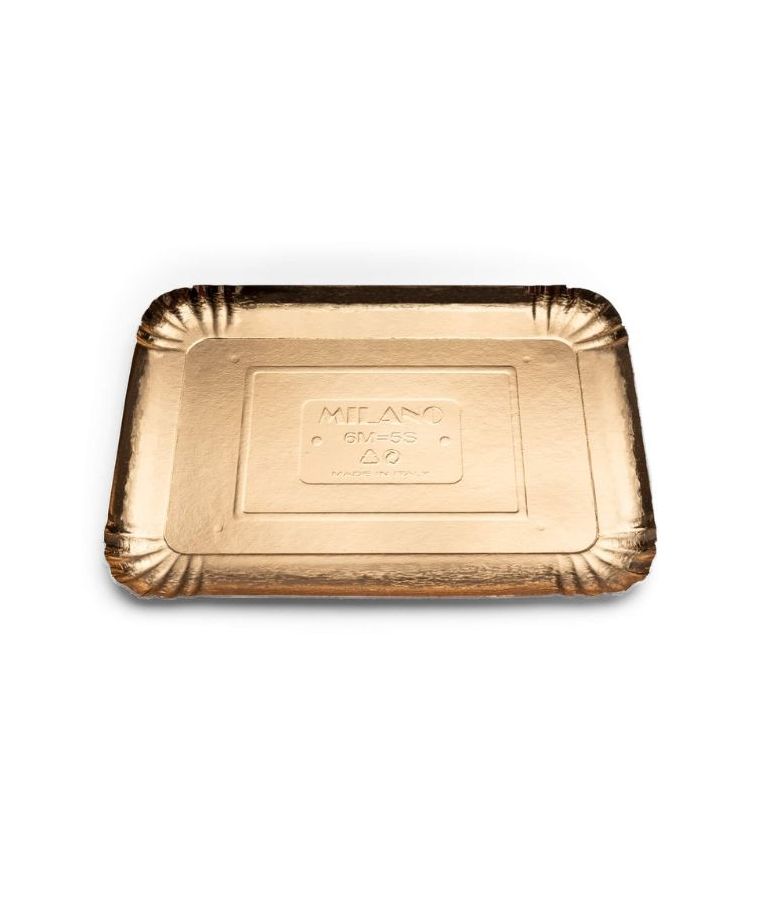 Padėklai kartoniniai aukso spalvos 38,3 × 28,5 cm (~70 vnt.) – praktiškas ir estetiškas sprendimas konditerijai, kepiniams bei įvairių užkandžių pateikimui. Pagaminti iš 100 % perdirbto kartono, padengti aukso spalvos poliesterio plėvele, kuri suteikia elegantišką išvaizdą ir yra tinkama tiesioginiam sąlyčiui su maistu. Stačiakampė forma idealiai tinka tortams, pyragams, desertams ar šventiniams gaminiams eksponuoti. Supakuoti termoplėvele (shrink-wrap), patogūs sandėliavimui ir naudojimui. Rekomenduojama vengti maisto sąlyčio su viršutiniu padėklo kraštu, kuris nėra padengtas plėvele. Puikus pasirinkimas tiek HoReCa sektoriui, tiek kepykloms ar namų šventėms.