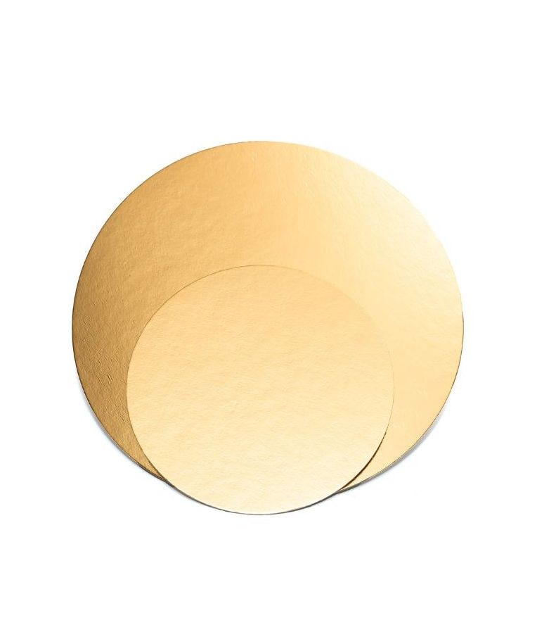 Padėklai kartoniniai aukso spalvos apvalūs 16 cm (100 vnt.) – tvirti ir estetiški konditeriniai padėklai, skirti desertams, mini tortams, pyragėliams ar užkandžiams pateikti. Pagaminti iš 100 % perdirbto kartono (1050 g/m²) ir padengti aukso spalvos poliesterio plėvele, todėl paviršius yra tinkamas tiesioginiam sąlyčiui su maistu. 16 cm skersmens apvali forma idealiai tinka vienos porcijos kepiniams bei elegantiškam pateikimui vitrinoje ar šventiniame stale. Supakuoti termoplėvele (shrink-wrap), patogūs sandėliuoti ir naudoti kasdienėje veikloje. Puikus pasirinkimas HoReCa sektoriui, kepykloms, konditerijoms ir šventėms namuose.