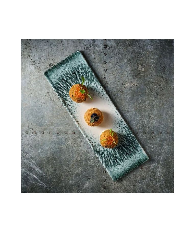 Padėklas Lume Midnight Blue 29,5x8,5 cm – elegantiškas Inked Lumé kolekcijos indas, pasižymintis spinduliuojančiu dizainu, įkvėptu šviesos energijos ir subtilios modernios estetikos. Tamsiai mėlynas atspalvis suteikia stalui išraiškingumo, o glazūruotas paviršius užtikrina atsparumą dėmėms bei blizgesį. Pagamintas iš vitrifiuotos keramikos, todėl išsiskiria tvirtumu, atsparumu šilumai ir terminio šoko poveikiui. Tinka indaplovei bei mikrobangų krosnelei – puikus pasirinkimas užkandžiams, desertams ar degustacijoms tiek HoReCa sektoriuje, tiek namuose.