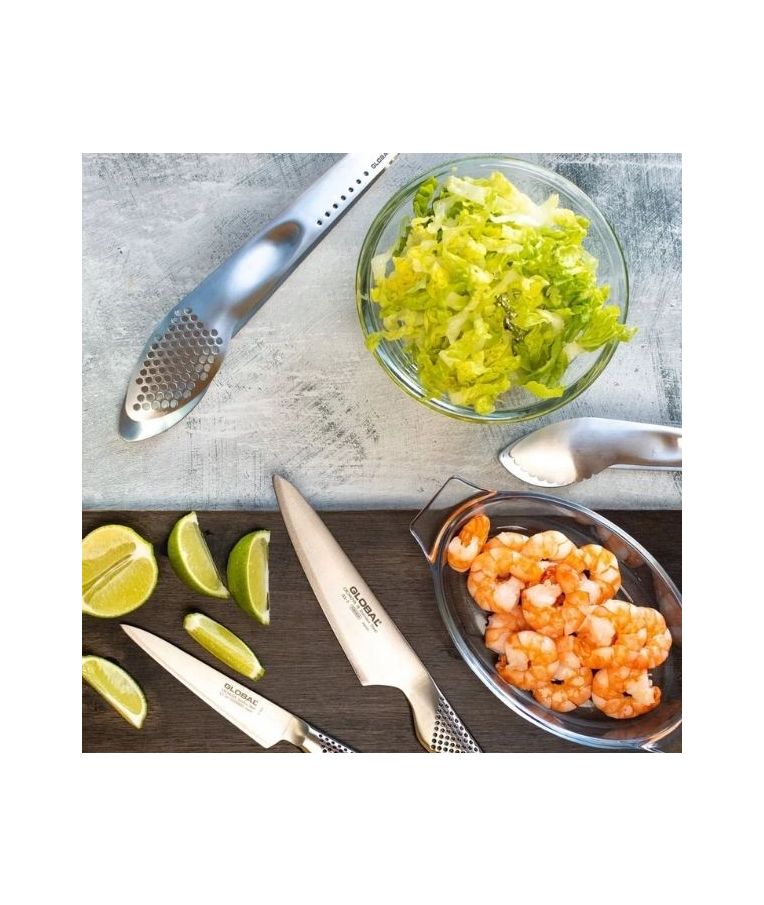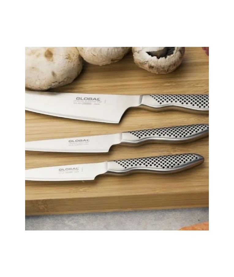 GLOBAL GS-38 – tai itin praktiškas, mažo formato peilis su 9 cm ilgio ašmenimis, skirtas tiksliems darbams virtuvėje. Šis modelis yra tuščiavidurės rankenos alternatyva GSF-15 peiliui ir dažnai sutinkamas naujesniuose rinkiniuose. Ergonomiškos formos tuščiavidurė rankena užtikrina patogų laikymą ir gerą kontrolę dirbant. Lygūs ašmenys puikiai tinka vaisių ir daržovių lupimui, sėklų išėmimui bei kitiems darbams, kuriems reikalingas ypatingas tikslumas.